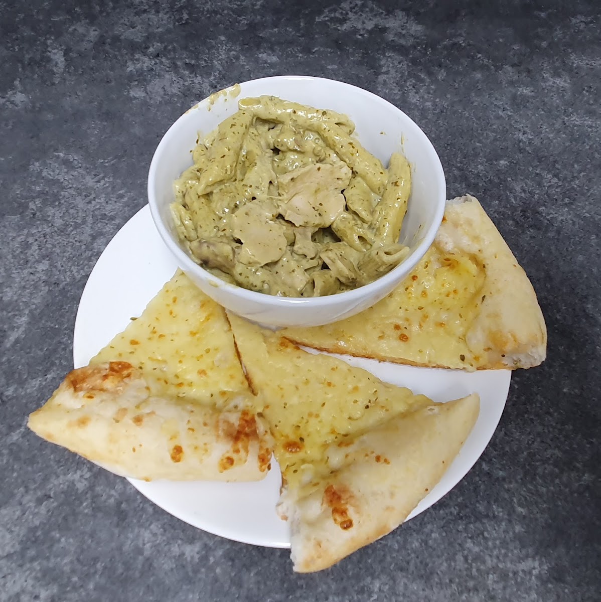 Paesana Pasta and Cheese Garlic Bread: The perfect combo, where the rich, savory flavors of the pasta are complemented by the cheesy, garlicky goodness of the bread.